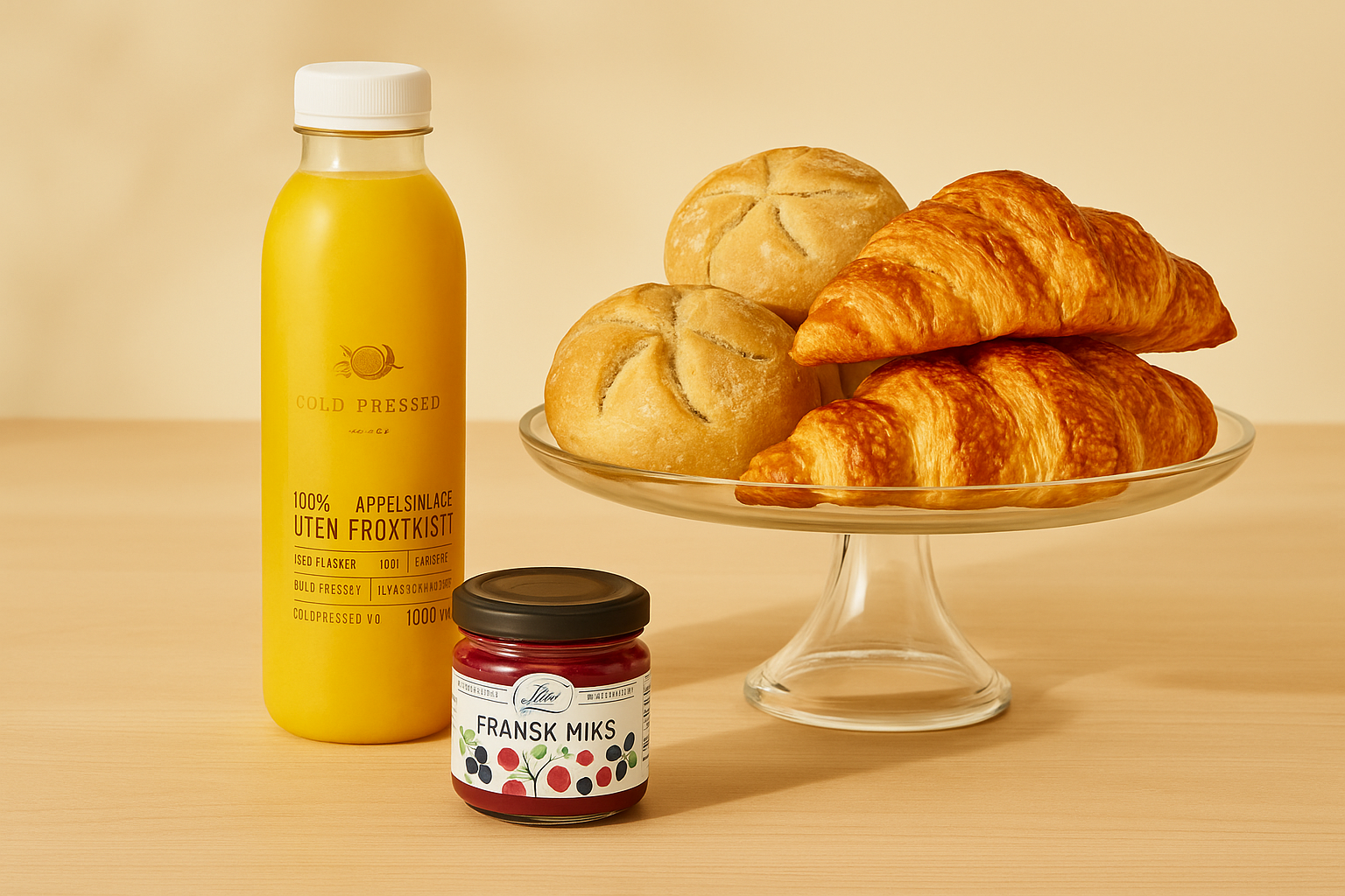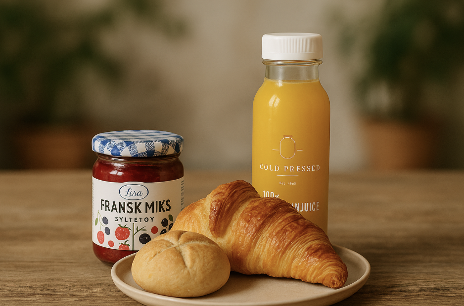 Vi leverer fersk frokost rett på døra – med rundstykker, croissanter, juice, rundstykker og brød – ferdig pakket og klar til å nytes. Perfekt som en liten hilsen, en takk eller en overraskelse på en vanlig tirsdag.
